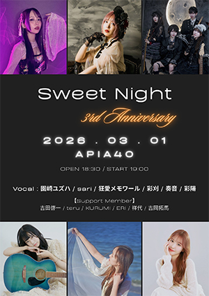 出演:園崎ユズハ(vo) / sari(vo) / 狂愛メモワーズ(Band) / 彩刈(vo) / 奏音(vo) / 彩陽(vo)