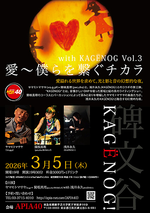 出演:ヤマモトマサヤ(vo,g)+関根真理(per,cho/渋さ知らズ) with KAGËNOG![浅井永久]
