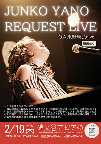 出演:矢野絢子(vo,p) オープニングアクト:東野康弘(vo,g)